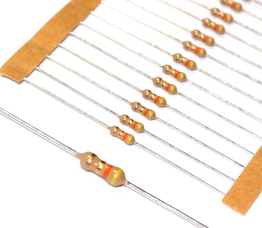 Zdjęcie poglądowe na obudowę rezystora (przedstawia 4.3R 0,25W 5%)