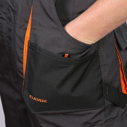 Spodnie ogrodniczki classic – atrakcyjne wzornictwo i doskonała funkcjonalność. Wykonane z bardzo wytrzymałej specjalistycznej tkaniny - płótno (80% poliestru i 20% bawełny) o bardzo wysokiej gramaturze 270+/-10 gram/m2.