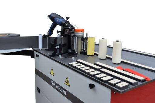 - Grzałka palcowa wewnątrz wałka klejowego do podgrzewania kleju przed nałożeniem nastawionej warstwy klejowej na obrzeże