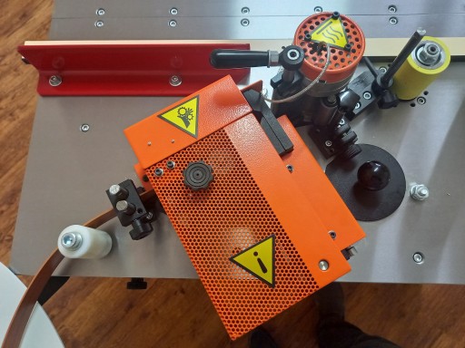 Oklejarka ze zbiornikiem klejowym do nakładania warstwy kleju na obrzeże w trakcie wykonywania funkcji okleinowania. Maszyna nie wymaga sprężonego powietrza - operator steruje funkcjami maszyny za pomocą pedału nożnego, wspomaganego sprężyną gazową. PRODUKT POLSKI