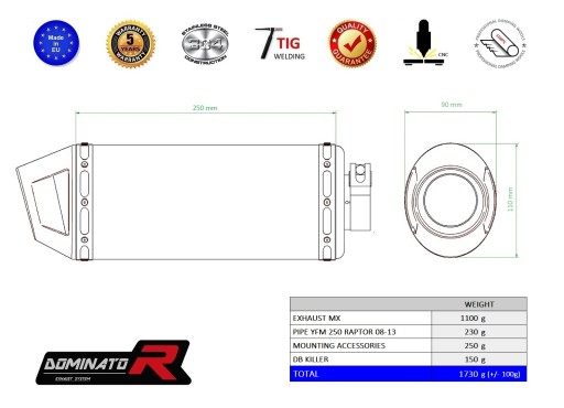 выхлоп DOMINATOR MX YAMAHA YFM 250 RAPTOR 08-13