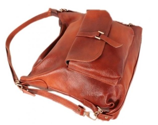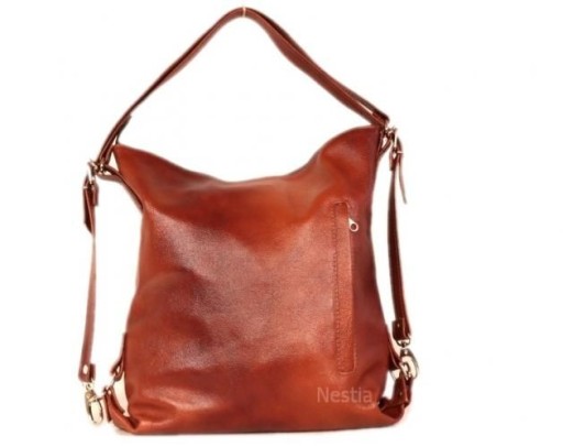 TOREBKA SKÓRZANA PLECAK A4 SKÓRA BRĄZOWO-RUDA HIT!