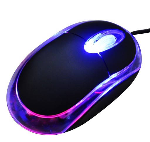 Myszka do komputera świecąca w kolorach czerwonym i niebieskim robi niesamowite wrażenie, szczególnie w nocy.