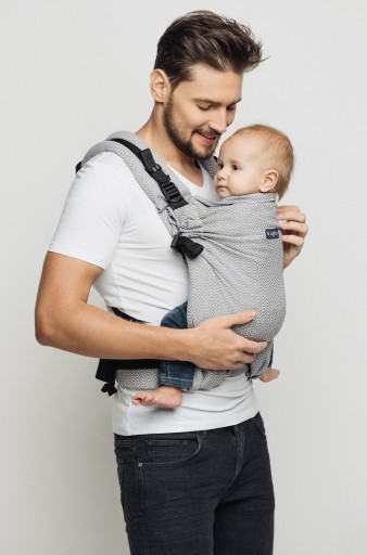 - Posiada wygodne i bezpieczne klamry oraz prosty system regulacji, dzięki któremu świetnie da się dopasować do sylwetki zarówno smukłej jak i postawnej osoby. Z tego powodu w roli noszącego mogą sprawdzać się znakomicie nie tylko mamy, ale i tatusiowie.