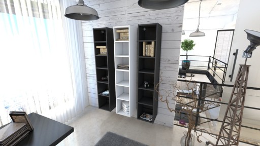 Szafka wieszana na tradycyjnych zawieszkach meblowych z regulacją wysokości, na dole szafki trawers który można dodatkowo przykręcić do ściany co pozwala uzyskać bardzo dużą wytrzymałość na obciążenie szafki.