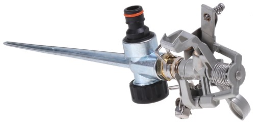 Produkt wbijany jest na przelotowym metalowym kolcu, który posiada nypel (adapter) pozwalający w łatwy i szybki sposób podłączyć szybkozłącze z wężem. Dodatkowo umożliwia szeregowe połączenie i zasilanie kilku zraszaczy z jednej linii (gwint 3/4").