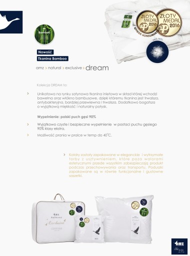 AMZ Szamotuły to renomowany polski producent najwyższej jakości kołder i poduszek. Puchowych i syntetycznych. Znany i ceniony w całej Europie.
