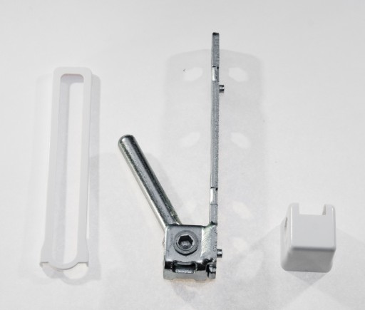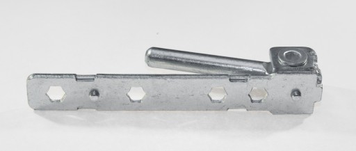 Opis: zawias wykonany jest z metalu ocynkowanego. Jest to zawias okienny dolny. Część dolna zawiasy przykręcana jest do ramy okna za pomocą 4 wkrętów a część górna zawiasy przykręcana jest do skrzydła okna za pomocą 2 wkrętów. Dodatkowo dolna część zawiasu posiada 2 niewielkie bolce ustalające położenie zawiasu jak i przeciwdziałające opuszczaniu się zawiasu. Górna część zawiasu również posiada 2 bolce ustalające położenie zawiasu jak i przeciwdziałające obwieszaniu się skrzydła. Zawias tego typu jest stosowany najczęściej w oknach PCV. Zawias przeznaczony jest do skrzydła o maksymalnej wadze 130 kg. Zawias umożliwia regulację okna w poziomie +/- 2 mm (dolna część zawiasu) oraz w pionie +/- 2 mm (górna część zawiasu). Umożliwia też regulację docisku skrzydła w zakresie +/- 0,5 mm.
