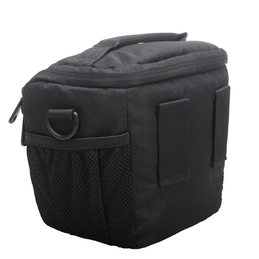 Kabura posiada ponadto dwie boczne kieszonki siatkowe na dodatkowe akcesoria oraz na drobne elementy typu karty, filtry, przewód. Dodatkowo kabura wyposażona jest w uchwyt do łatwego / szybkiego przenoszenia z miękką rączką.
