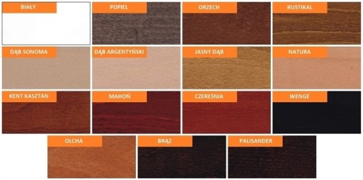Kolory wybarwienia elementów drewnianych - nóżki narożnika