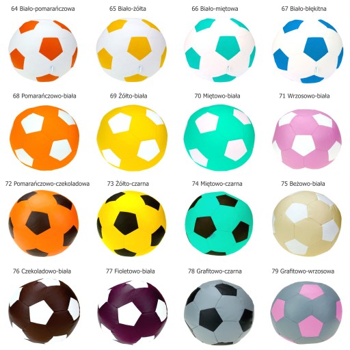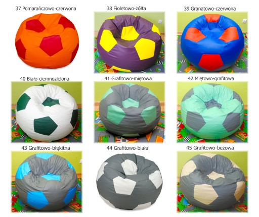 Przedmiotem aukcji jest piłka pufa o pojemności 300L. Wersję kolorystyczną należy wybrać przy zakupie z dostępnych modeli z wzornika, bądź skomponować własną. Instrukcje dot. dobierania kolorów opisujemy w tekście poniżej. Wymiary pufy to 80cm szerokości, 80cm głębokości oraz 50cm wysokości. Należy pamiętać, że pufa jest meblem bezszkieletowym, dlatego jej wymiary mogą się zmieniać w zależności od wagi osoby użytkującej oraz ułożenia pufy. Pufa jest wypełniona wysokiej jakości granulatem EPS który posiada atest PZH. Polistyrenowe kulki swobodnie przemieszczające się wewnątrz pufy są surowcem wysokiej jakości, zapewniają wysoki komfort użytkowania zarówno dla dzieci jak i dorosłych. Materiał z którego została wykonana - ekoskóra dollaro, również posiada atest PZH.