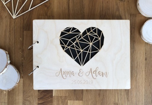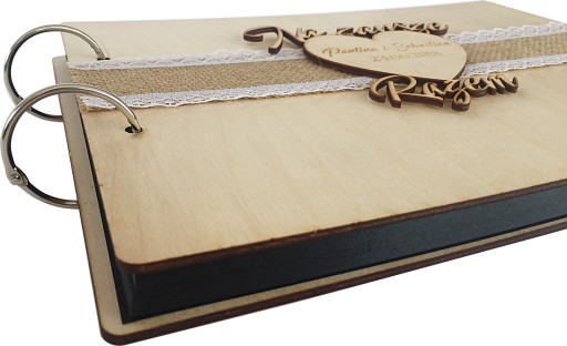drewniana okładka + taśma + drewniany personalizowany dekor + grawer