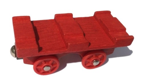 Wagon pasuje do systemu torów drewnianych firm: Brio, Bigjigs, Woodyland, Ikea, Eichhorn, Tesco, Carousel, Maxim, Bino