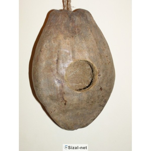 Kokos z przymocowanym sznurkiem do zawieszenia z wyciętym jednym otworem. Do zaadoptowania według potrzeb. Wielkość kokosów od 18 - 25 cm. Polecam do dużych klatek lub wolier.