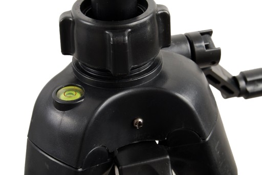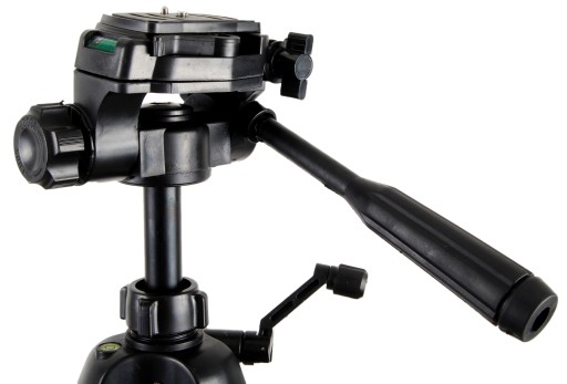 Góra statywu to trójwymiarowa głowica pozwalająca na ustawienie aparatu bądź kamery w dowolnym położeniu (w zakresie -70 a 90 stopni). Głowicę przestawia się płynnymi ruchami (360 stopni wokół własnej osi) - sprawia to, że jest idealna do filmowania. W dolnej części umieszczono poziomicę.