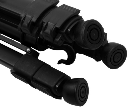 Teleskopowo rozkładane nóżki regulowane niezależnie pozwalają ustawić statyw na nierównej powierzchni, dla zwiększonej stabilności łączone są za pomocą trójnika. Antypoślizgowe stopki mocno trzymają się podłoża.