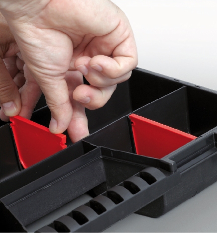 Specjalna konstrukcja pokryw pozwala na 100-procentowe zabezpieczenie zawartości. Bardzo pomocny w pracy instalatorów, mechaników, majsterkowiczów oraz Pań Domu.