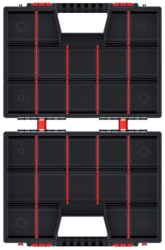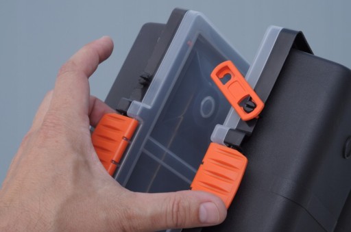 Organizer NOR16DUO to dwie skrzyneczki NOR16 skierowane do siebie pokrywami. Dzięki temu możemy dokładnie zabezpieczyć zawartość. Połączone są za pomocą dwóch zawiasów i dwóch zapięć.