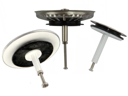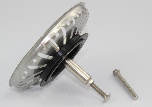 Nierdzewna śruba do korka zlewu do zastąpienia fabrycznej w celu regulacji wysokości korka w zakresie 40-65 milimetrów.