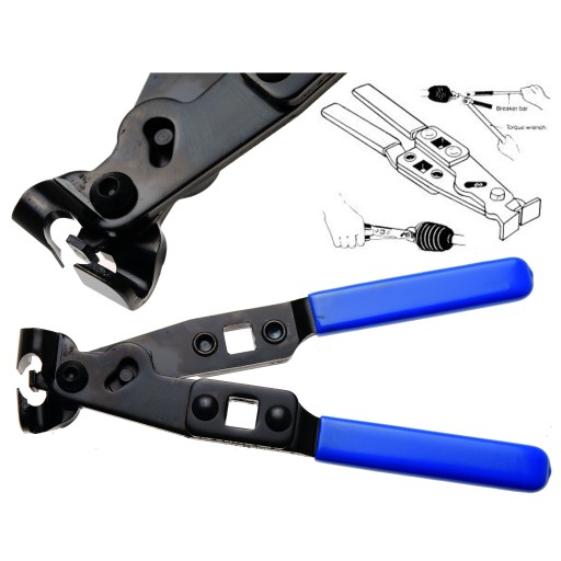 - Ramiona szczypiec wyposażone w gniazda 1/2", które umożliwiają przedłużenie ramion o pokrętła w celu zwiększenia siły docisku