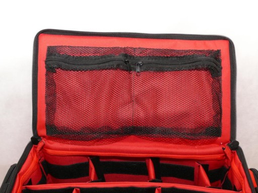 - W centralnej komorze 1 duża przegroda oraz 6 małych z możliwością demontażu dla idealnego rozmieszczenia opatrunków i przyrządów medycznych (wersja oliwkowa z 3 małymi przegródkami)