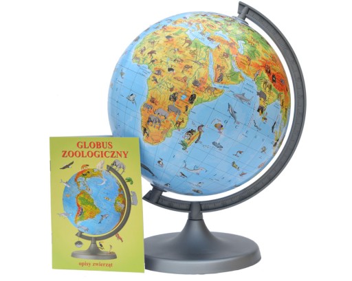 Globus z mapą fizyczno - zoologiczną. Świetnie nadaje się do przyswajania wiedzy z zakresu geografii.