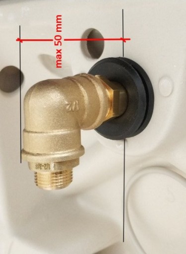 Ten model pisuaru wymaga wykonania wnęki w ścianie o głębokości maksymalnie 50mm na dopływie wody do pisuaru.