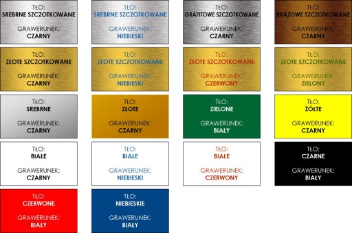Kolory tabliczek: