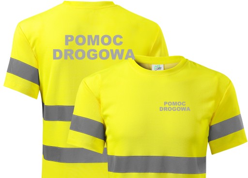 Ostrzegawcza koszulka z pasami i nadrukiem odblaskowym: POMOC DROGOWA