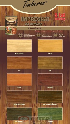Impregnat TIMBERON wnika w głąb drewna i po wyschnięciu nie tworzy wyraźnej powłoki, jaką dają typowe lakiery lub farby. Drewno po impregnowaniu i wyschnięciu ma powierzchnię matową. Impregnaty bezbarwny jak i kolorowe można mieszać w celu otrzymania innego koloru, lecz należy najpierw wykonać próbę na małej ilości.