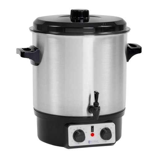 Podgrzewacz do wina marki Royal Catering to profesjonalne urządzenie, które pozwoli na gotowanie, podtrzymanie temperatury oraz dozowanie gorących napojów np. wina, grzańca, mleka, wody, oraz różnych wywarów. Dzięki specjalnej wkładce pozwala także pasteryzować słoiki z przetworami z owoców i warzyw.