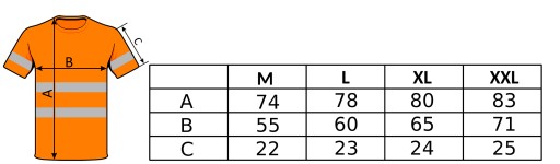 Jaskrawy kolor, odblaskowy nadruk i cztery pasy 3M sprawiają, że koszulka widoczna jest z dużej odległości, nawet przy niewielkim oświetleniu.