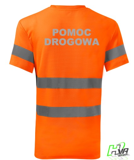 Ostrzegawcza koszulka z pasami i nadrukiem odblaskowym: POMOC DROGOWA