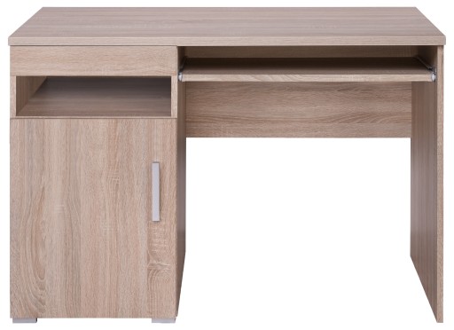 Prosta forma, kolor dąb sonoma imitujący drewno, minimalistyczne uchwyty oraz wysoki poziom funkcjonalności to cechy, które wyróżniają kolekcję DAMIS. Biurko z tej kolekcji, posiadające szufladę oraz szafkę nie dość, że jest wygodne to posłuży jako idealne miejsce do pracy, nauki oraz spędzania wolnego czasu. Wysuwany blat sprawdzi się jako przestrzeń przeznaczona na klasyczną klawiaturę od komputera lub może pełnić rolę dodatkowej półki. Mebel ten przeznaczony jest do minimalistycznego biura, pokoju młodzieżowego lub dziecięcego.