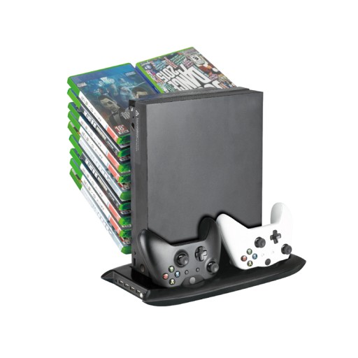 Podstawka chłodząca 5w1 do Xbox ONE X ze stacją dokującą do 2 padów i stojakiem na 18 gier.