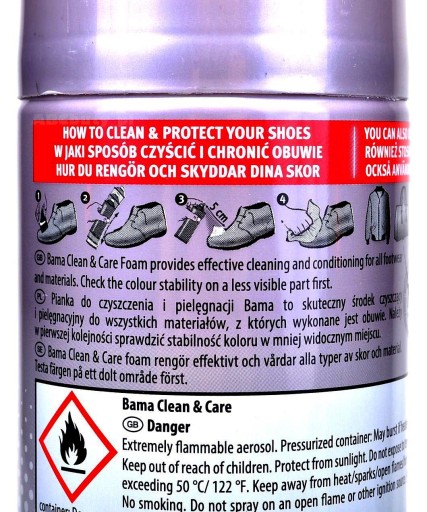 - Pianka przeznaczona jest do stosowania na obuwie, odzież, galanterię oraz do tapicerki skórzanej / welurowej.