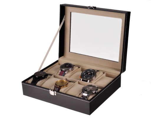 Pudełko zmieści 10 zegarków - delikatnych, masywnych czy sportowych (o szerokości koperty do 5cm - w innym wypadku zegarki mogą stykać się ze sobą)