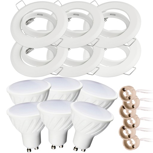 ZESTAW 6x ŻARÓWKA LED GU10 + OPRAWA RUCHOMA BIAŁA + GNIAZDO