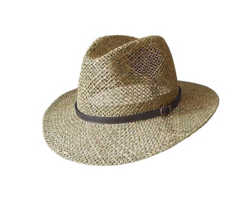 Stylowy, ażurowy kapelusz męski/ damski, ozdobiony czarnym skórzanym paskiem. Dostępny w kolorze beżowo - zielonym. Wykonany w 100% z naturalnego surowca słomki. Kapelusz jest bez podszewki z potnikiem z taśmy rypsowej. Idealny na wakacyjny wyjazd. Rondo kapelusza jest proste, jego szerokość ok 6,3 cm. Wysokość kapelusza ok. 12 cm.