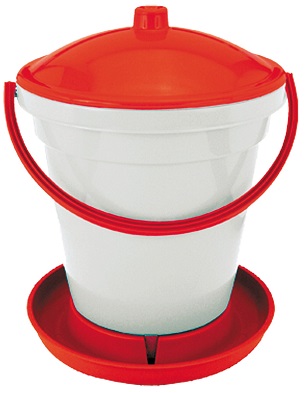 Poidło wiaderkowe dla drobiu jest duże, pojemne i bardzo stabilne dzięki szerokiej podstawie, może z niego korzystać 28-30 sztuk drobiu jednocześnie. Doskonałe dla gospodarstw rolnych jak i dużych ferm. Właściwe działanie poidła zapewnia innowacyjny zawór z pływakiem znajdujący się pomiędzy podstawą a zasobnikiem wody. Woda dozuje się samoczynnie na zasadzie pływaka i różnicy ciśnień. Wystarczy napełnić zbiornik - nie ma konieczności zamykania pokrywy. Specjalny zawór pływakowy dozował będzie wodę samoczynnie. Szerokość poidła jest tak dobrana, aby zapewnić maksymalną stabilność nawet wtedy, gdy poidło jest niepełne. Dzięki konstrukcji w kształcie standardowego wiadra poidło przenosi się wygodnie nawet gdy jest pełne. Pokrywa zabezpiecza wodę przed zabrudzeniem i zapewnia łatwe napełnianie zasobnika. Posiada uchwyt od łatwego przenoszenia. Oryginalny produkt włoski wysokiej jakości, bardzo trwały, estetyczny i łatwy w czyszczeniu.