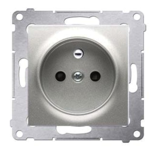 Simon 54 Gniazdo pojedyncze z/u 16A IP20 z przesłoną torów srebrny mat DGZ1Z.01/43