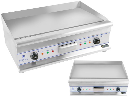 Grill elektryczny marki Royal Catering to profesjonalny sprzęt, który sprawdzi się w restauracjach, punktach gastronomicznych, firmach cateringowych oraz w warunkach domowych. Płyta umożliwia przygotowanie mięs, warzyw, jajek, pieczywa i naleśników, zarówno w pomieszczeniach, jak i na zewnątrz.