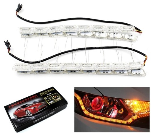 Zestaw elastycznych świateł LED z funkcją płynnego (dynamicznego) kierunkowskazu.