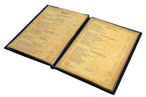 - elegancka teczka menu w formacie A4,