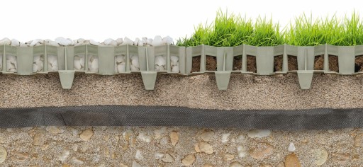 Kratka do wykonywania nawierzchni drogowych (podjazdów, miejsc parkingowych, chodników i ścieżek) z wypełnieniem komórek trawą lub kruszywem (kamieniami)