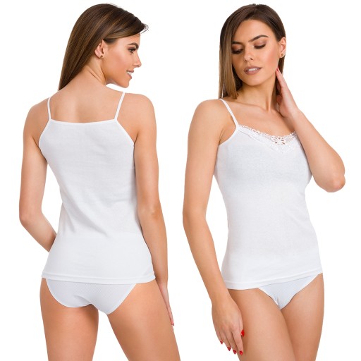 Biała Klasyczna podkoszulka damska na ramiączka z dodatkiem koronki