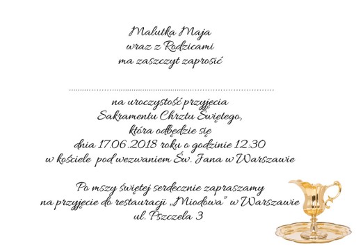 Przedmiotem oferty jest zaproszenie na Chrzest wraz ze zdjęciem i personalizacją danych