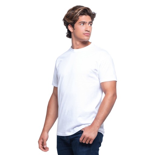 T-shirt męski z krótkim rękawem. Brak bocznych szwów. Podwójne szwy na ramionach. Wzmocniony lycrą ściągacz. Taśma wzmacniająca.