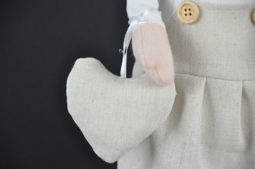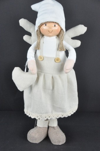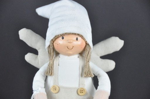 Elf ozdoba figurka stojąca wykonana z tkaniny i tworzywa w kolorze biało-beżowym .