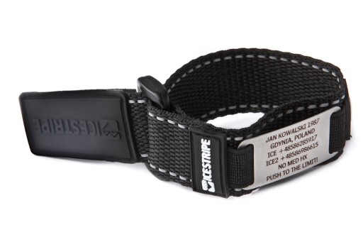 Na opasce ICEstripe Sport masz do dyspozycji 6 linijek tekstu, w których możesz zamieścić najważniejsze informacje o swojej osobie. Dane zostaną wygrawerowane laserowo na identyfikatorze ze stali nierdzewnej.